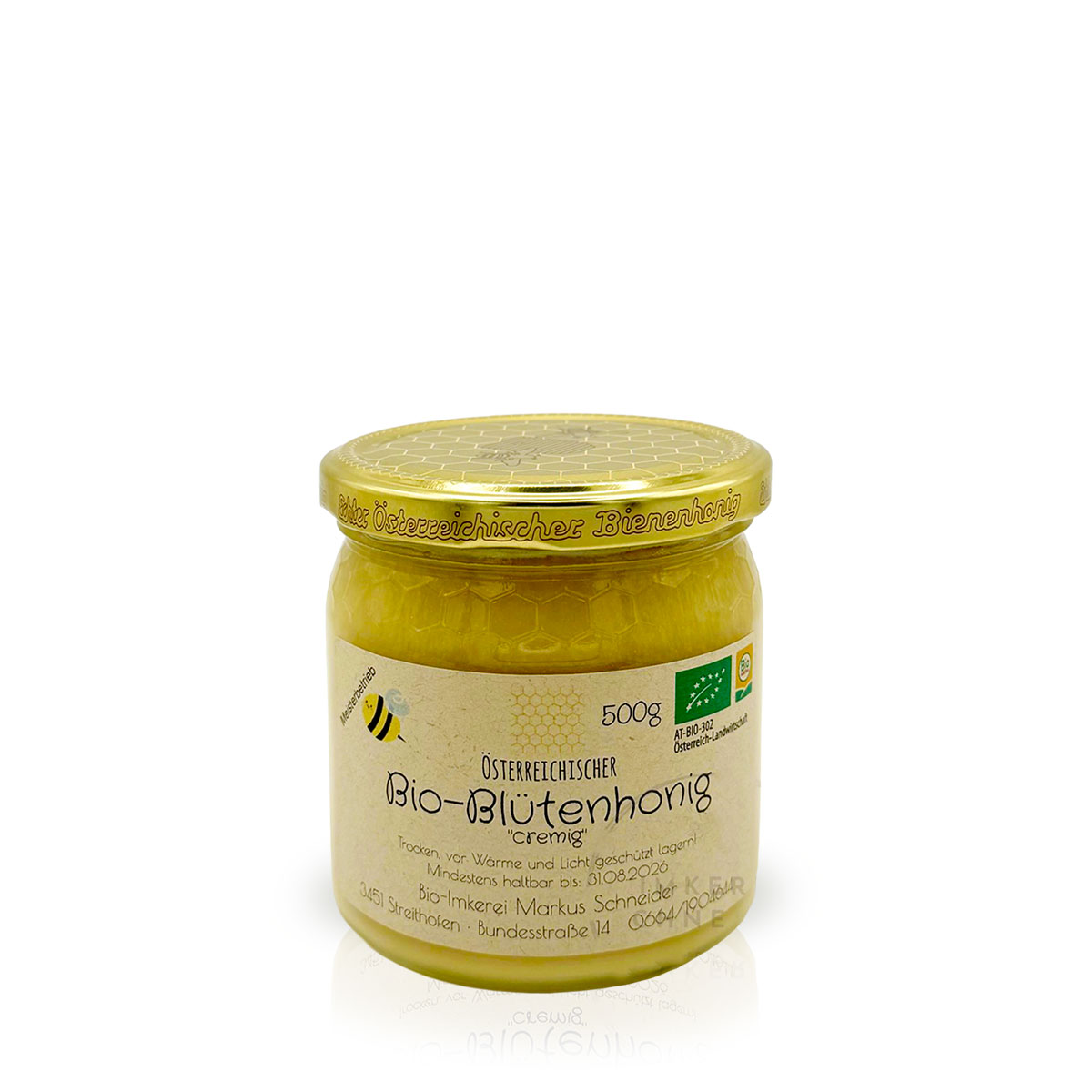 Ernte 2024: Der Bio-Blütenhonig besticht mit seiner weichen, cremigen und zarten Konsistenz, die durch ein schonendes Rühren über einen längeren Zeitraum entsteht.